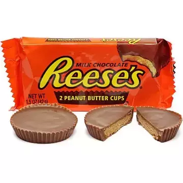 Reese's chocolate con leche, 2 copas de mantequilla de mani 42gms.